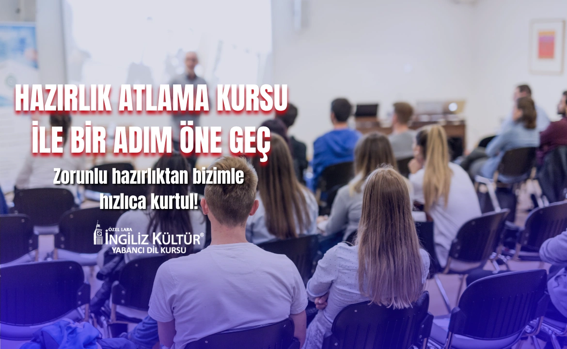 Hazırlık Atlama Kursu, öğrencilerin İngilizce öğreniminde temel adımları hızlıca geçip bir üst seviyeye geçmelerini sağlayan özel bir programdır. Bu kurs, özellikle hazırlık sınıflarına geçiş yapmak isteyen veya İngilizceyi kısa sürede pekiştirmek isteyen herkes için tasarlanmıştır. Lara İngiliz Kültür’de sunulan program, hızlı öğrenme ve kalıcı beceri kazandırma hedefiyle hazırlanmıştır.